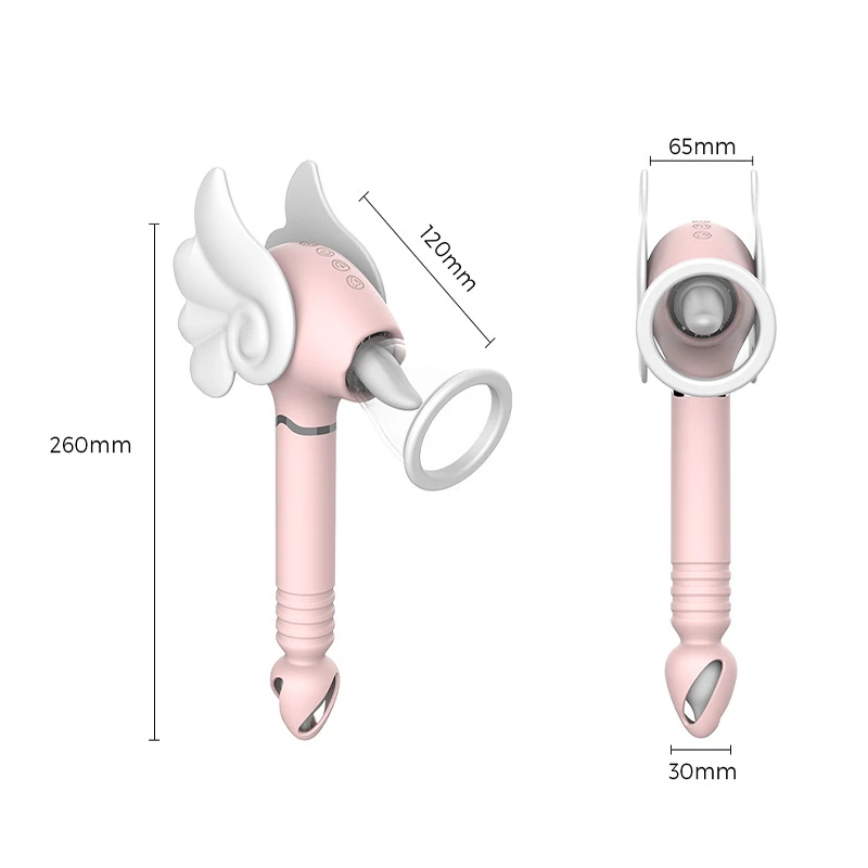 • 4-in-1 Design Combines suction, tongue-inspired touch, thrusting, and vibration in one wand-style massager for layered, versatile stimulation.