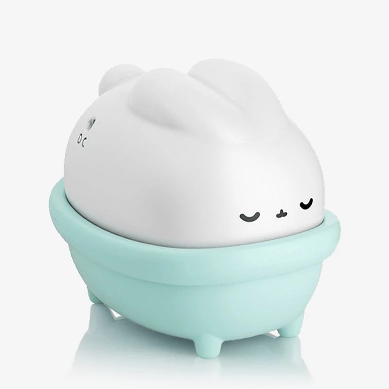 Product infographic showing the Moon Rabbit in its charging dock with "USB port for portable charging" and a splash shot labeled "be clean with a simple flush."